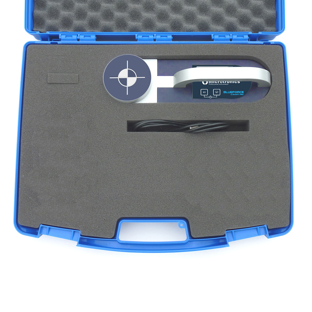 The BlueForce Smart PRO Impact Force Tester is provided with a USB cable for PC connectivity, a hex wrench for handle disassembly and a pre-formed carry-case suitable for taking the equipment to the measurement test site. The carry case dimensions: 430 x 290 x 108 mm.